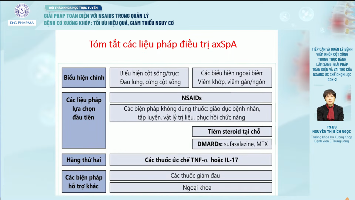 TS.BS Nguyễn Thị Bích Ngọc cập nhật vai trò của NSAIDs và ức chế chọn lọc COX-2 trong điều trị bệnh lý viêm khớp cột sống